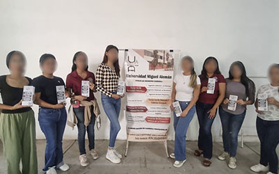 En el marco del Día Naranja, la Tercera Visitaduría General de la CODHET participó en la Universidad Miguel Alemán de Reynosa con la actividad “A mí también me puede pasar… Prevención del embarazo temprano”