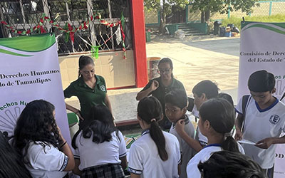 En el marco del Día Naranja, la Tercera Visitaduría General de la CODHET participó en la Universidad Miguel Alemán de Reynosa con la actividad “A mí también me puede pasar… Prevención del embarazo temprano”
