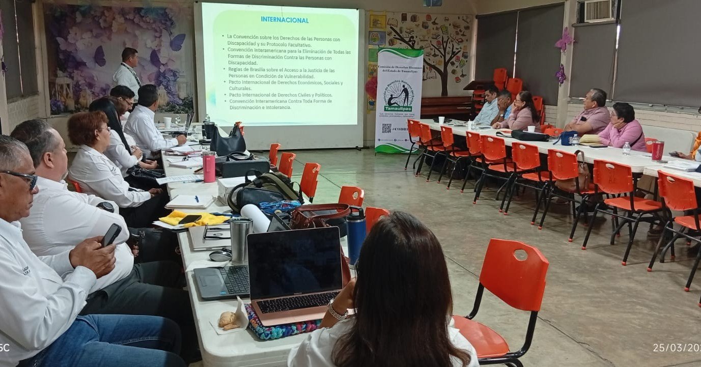 Se brindó capacitación con el tema “Inclusión, Derechos Humanos de las Personas con Discapacidad”, con el objetivo de fortalecer los conocimientos y la sensibilización en materia de inclusión y respeto a los derechos humanos. La actividad se llevó a cabo por invitación de la Dra. Clotilde Fernández Ledezma, Supervisora de Secundarias Generales Zona 06 de El Mante, Tamaulipas, y fue impartida por el Lic. Carlos Felipe Zúñiga Osorio, Auxiliar Administrativo adscrito a la Delegación Regional El Mante de este Organismo, dirigida a directivos y jefes de enseñanza de dicha zona escolar.
