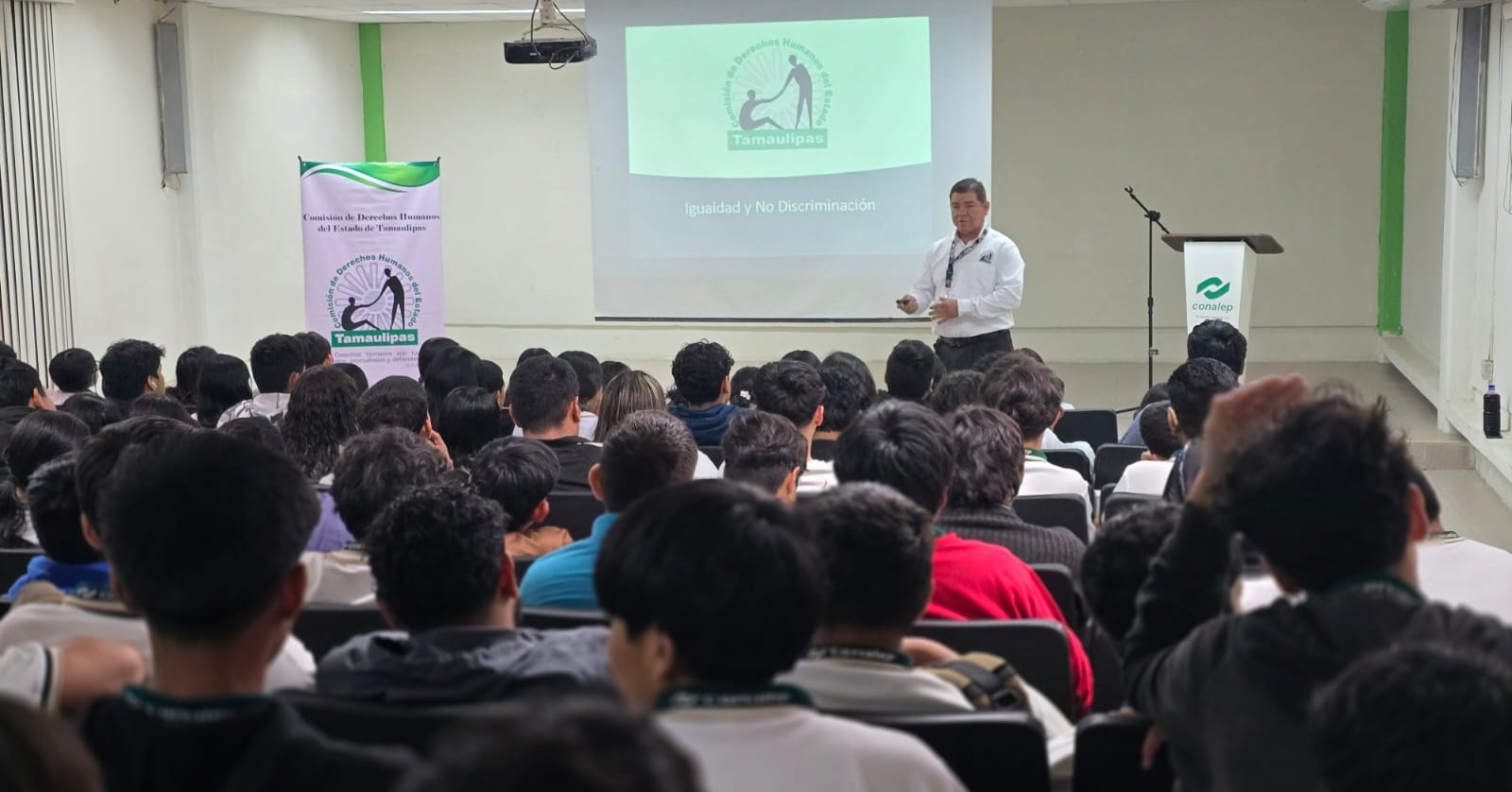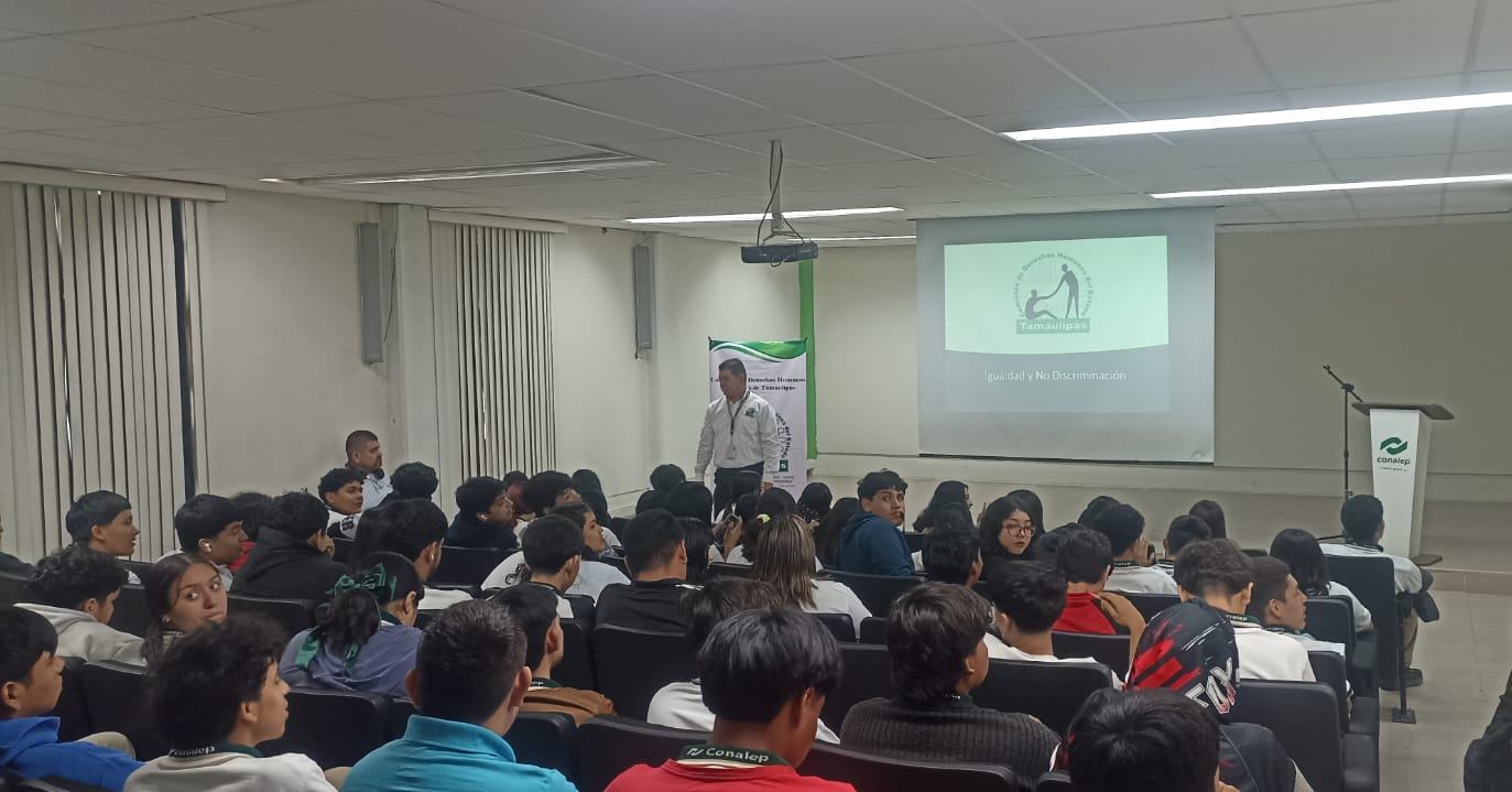 Se realizó capacitación “ Igualdad y No Discriminación en la Convivencia Escolar” a las y los alumnos del CONALEP 127, impartida por personal de Delegación Regional de la CODHET en El Mante, con el propósito de fomentar un entorno de aprendizaje seguro, inclusivo y respetuoso, donde cada estudiante sea reconocido en su dignidad humana sin importar sus características personales o sociales.