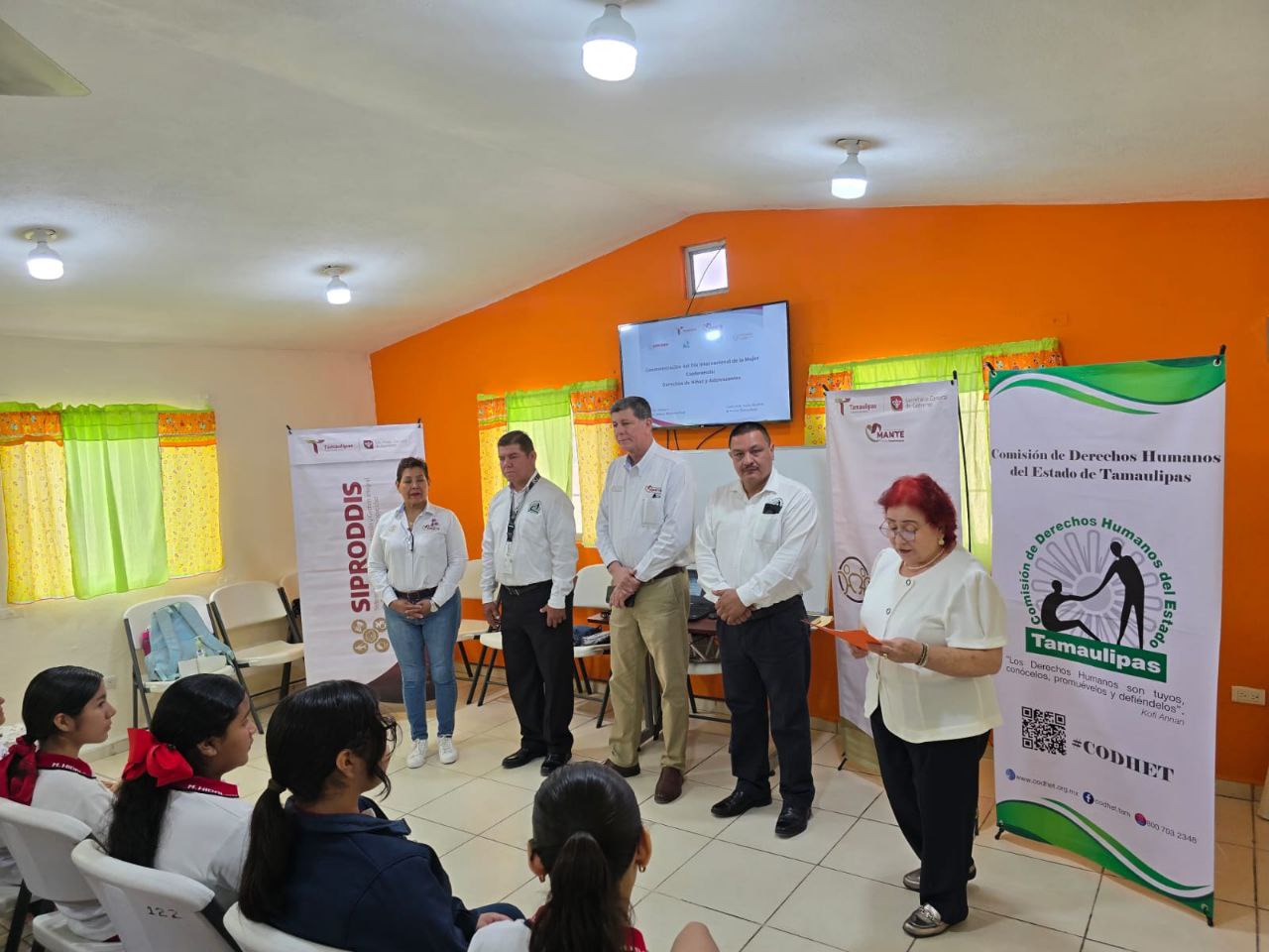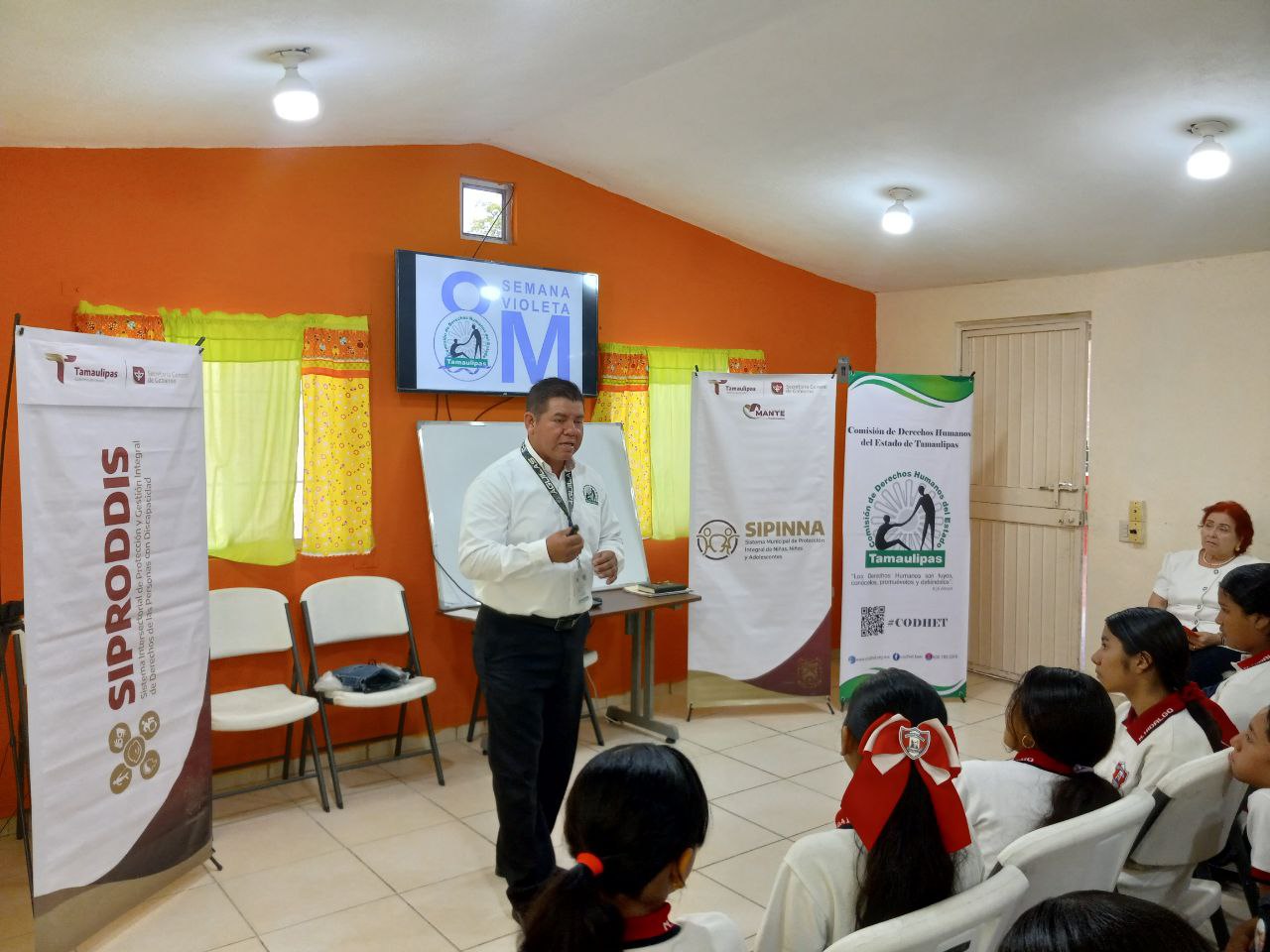 Se realizo conferencia con el tema «Derechos de la Mujer» en colaboración con Secretario Ejecutivo de SIPINNA en El Mante, impartida por personal de la Delegación Regional de la CODHET en dicho municipio y dirigido a alumnas de 5o y 6o grado de la Esc. Prim. «Miguel Hidalgo y Costilla». Fomentar estos valores desde temprana edad contribuye a construir una sociedad más justa y libre de discriminación, además de promover desde la niñez el respeto, igualdad e importancia de reconocer los derechos de todas las personas.