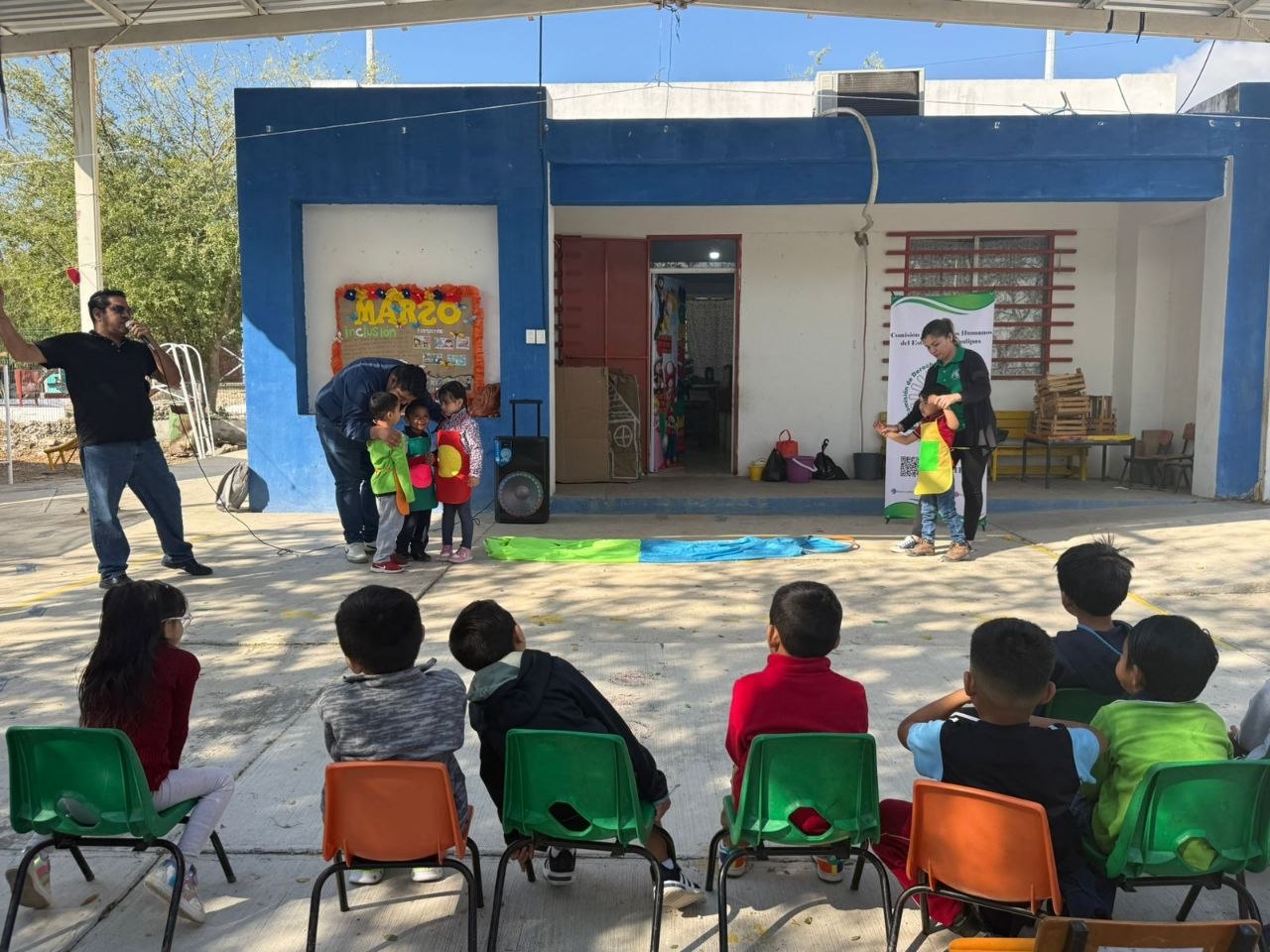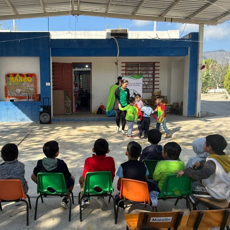 Personal de la CODHET presento la adaptación del cuento “Por cuatro esquinitas de nada”, en el jardín de niños Rodolfo Torre Cantú, en ciudad Victoria, con la finalidad de compartir con las niñas y niños una historia que les permite conocer sobre sus derechos y aprender sobre la importancia de la inclusión de las personas con discapacidad, esto en el marco de marzo mes de la educación especial.
