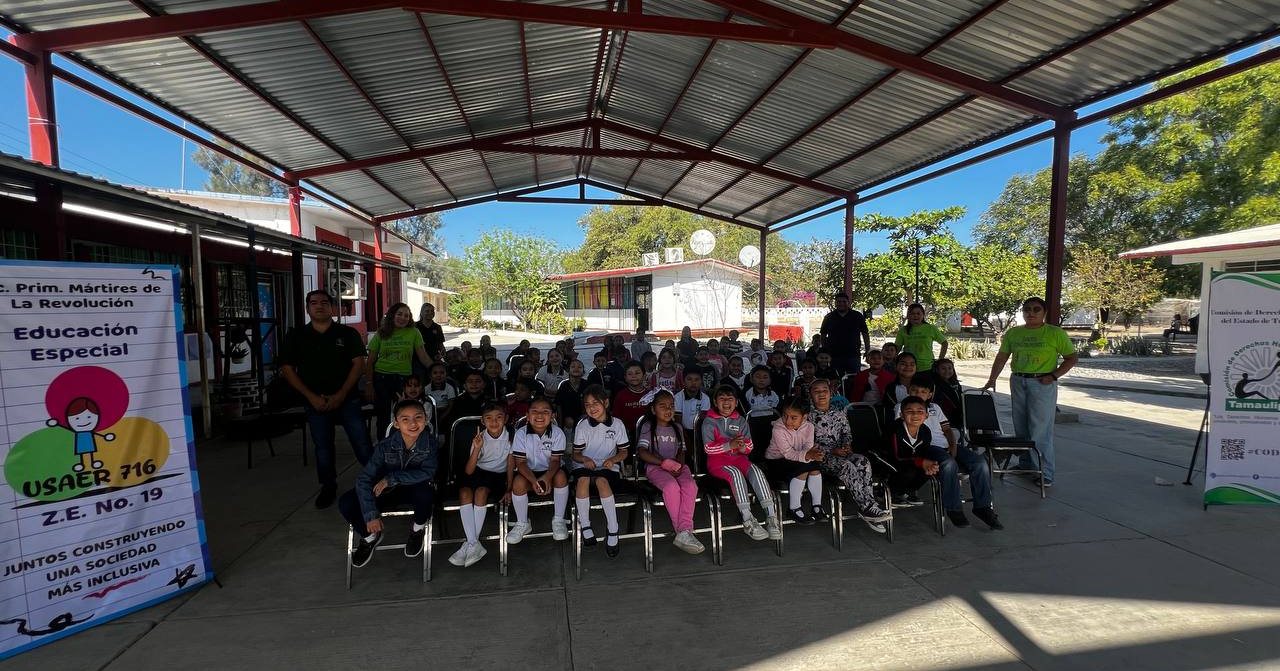 Se presentó el cuento “Por cuatro esquinitas de nada”, en la Escuela Primaria Mártires de la Revolución ubicado en el Ejido Congregación Caballeros, municipio de ciudad Victoria, compartiendo con niñas y niños de una forma divertida una historia que les permite aprender sobre sus derechos y la importancia de inclusión de las personas con discapacidad.