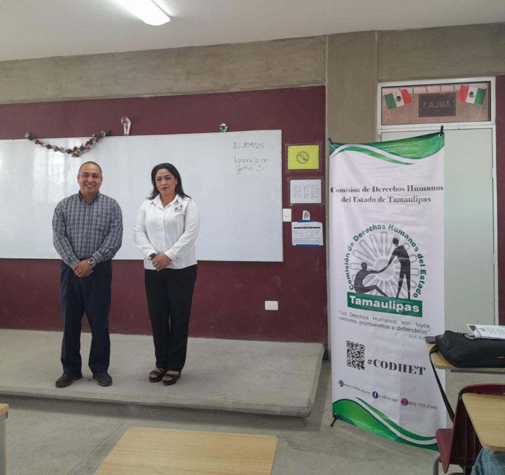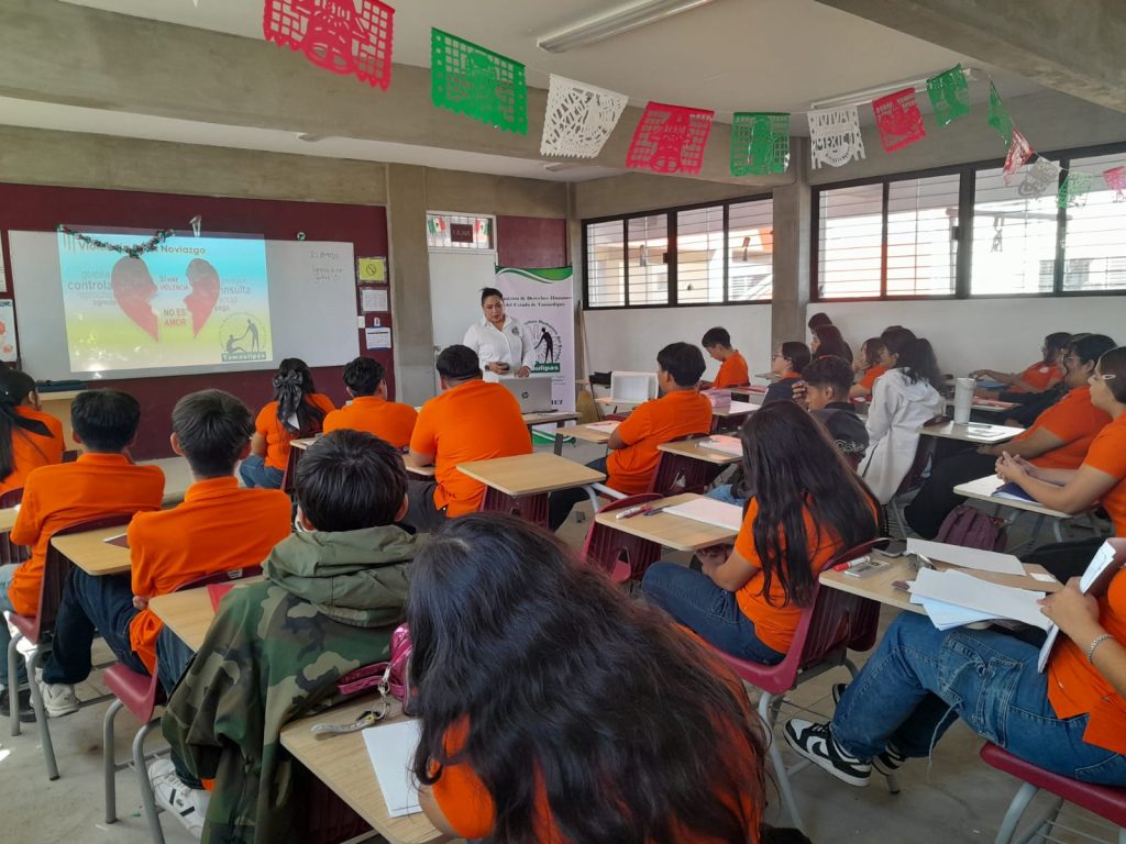 En el marco de las actividades conmemorativas del Día Naranja, que se celebra el día 25 de cada mes, personal de la Delegación Regional Laredo de la Comisión de Derechos Humanos del Estado de Tamaulipas (CODHET) llevó a cabo una platica sobre «Violencia en el Noviazgo» dirigida a estudiantes de la Escuela Preparatoria de UAT Nuevo Laredo. Dicha actividad tuvo como objetivo sensibilizar y concienciar a los jóvenes sobre la importancia de identificar y prevenir situaciones de violencia en las relaciones de noviazgo, promoviendo así una cultura de respeto y equidad de género.