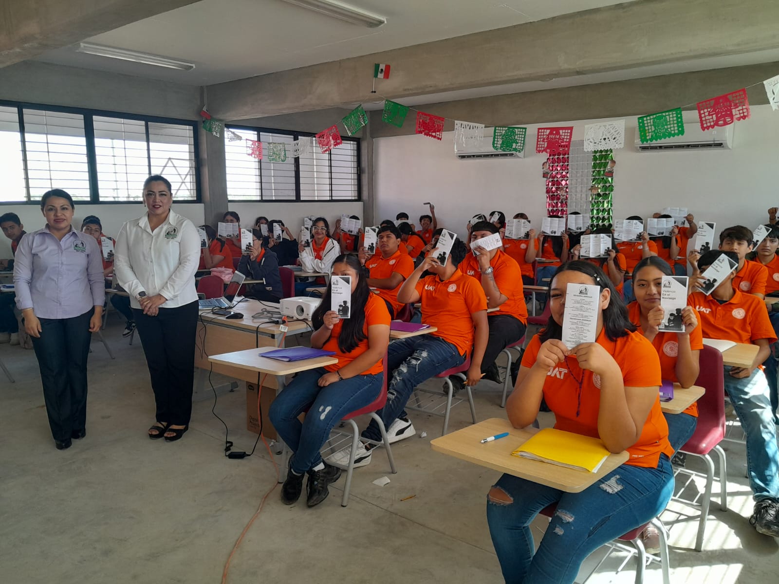Día Naranja. Personal de la Delegación Regional Laredo de la CODHET llevó a cabo una platica sobre «Violencia en el Noviazgo» dirigida a estudiantes de la Escuela Preparatoria de UAT Nuevo Laredo