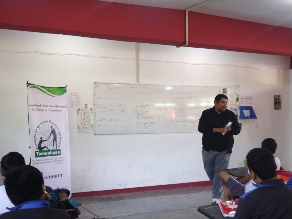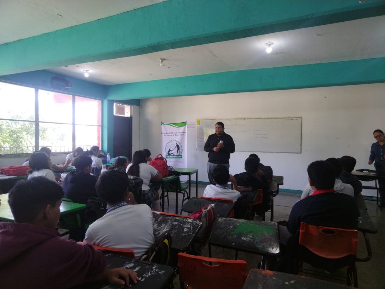 En coordinación con la Secretaría de Educación en Tamaulipas, se dio continuidad a las actividades programadas dentro de la “Jornada Cultural para la Prevención y Auxilio”, en la que personal de la Dirección de Atención a Grupos Vulnerables de la Comisión de Derechos Humanos del Estado de Tamaulipas (CODHET) participó activamente con el desarrollo de la plática “Jóvenes Libres de Violencia”, dirigida a los alumnos de la Esc. Sec. No. 5 “Prof. Juventino Pineda y Ortega”, en Ciudad Victoria, Tamaulipas. Esta acción tuvo como propósito fomentar en las y los jóvenes la reflexión sobre la importancia de la convivencia pacífica, prevención de la violencia y respeto a los derechos humanos, promoviendo entornos escolares seguros y libres de discriminación.