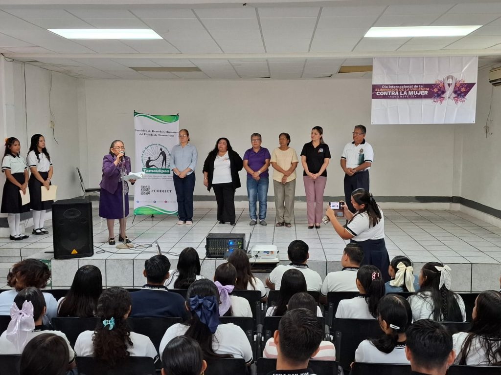 En el marco de los 16 días de activismo contra la Violencia de Género se llevó a cabo la conferencia «Violencia contra la mujer» a los alumnos Escuela Normal Rural de Tamaulipas Maestro Lauro Aguirre