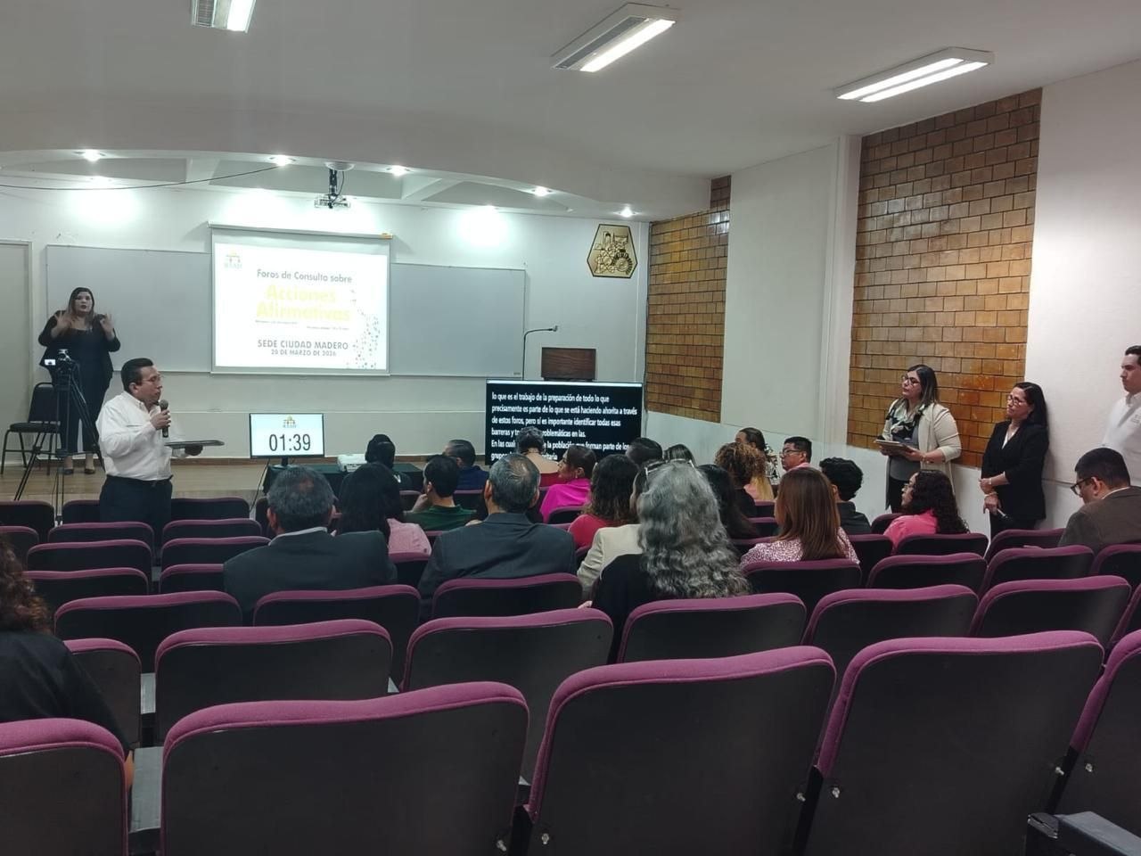 Personal de esta Segunda Visitaduría General, en el marco del respeto a los derechos humanos, la no discriminación e inclusión de personas con discapacidad, de la diversidad sexual, personas mayores y personas jóvenes, se participa en el Foro de Consulta sobre acciones afirmativas para la integración de los Consejos Distritales y Municipales, organizado por el Instituto Electoral de Tamaulipas, a través de la Comisión de igualdad de género y no discriminación; dicho Foro se llevó a cabo de manera presencial en la sala audiovisual del Instituto tecnológico de Ciudad Madero Tamaulipas.