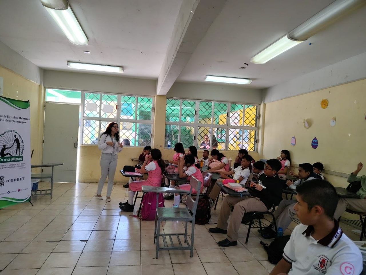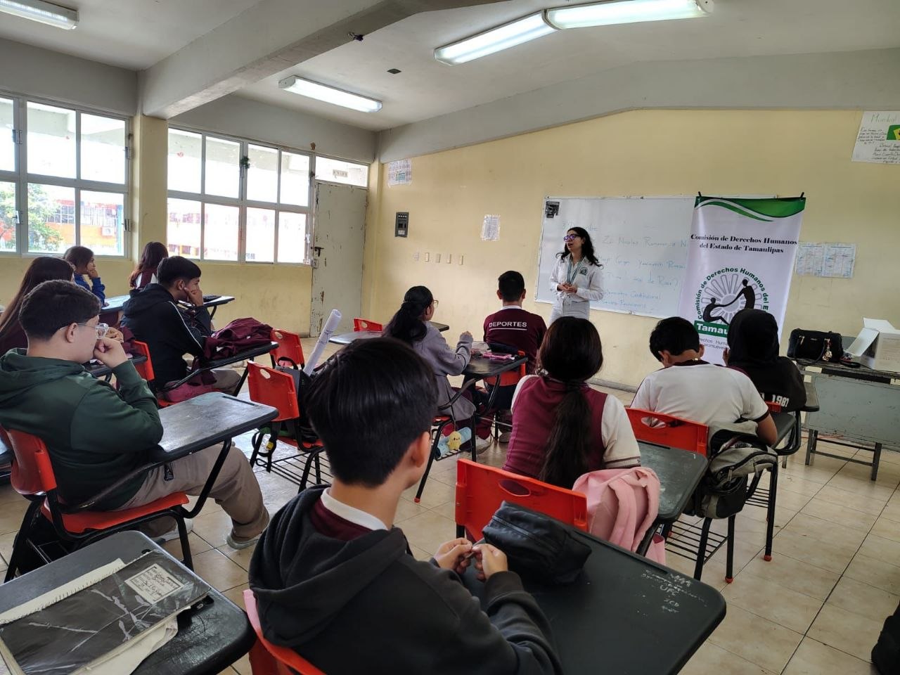 Personal de la Segunda Visitaduría General, participó en la jornada cultura de prevención y auxilio llevada a cabo en la Escuela Secundaria General No. 1 “Francisco Nicodemo” de Tampico, Tamaulipas, en dicha actividad se impartió plática alusiva a los derechos de las niñas, niños y adolescentes y prevención de la violencia escolar, esto como parte de las actividades de promoción y difusión que realiza este organismo defensor de los derechos humanos.