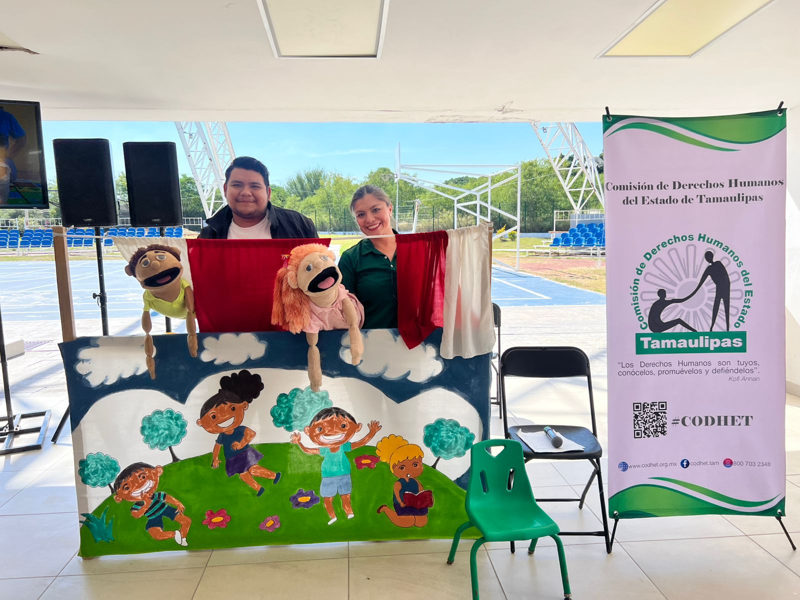 Personal de la CODHET presentó en el Centro de Bienestar Nuevo Santander, en Ciudad Victoria, Tamaulipas, la obra de títeres “Contemos hasta 10, los derechos de los niños”, para niñas y los niños de la comunidad quienes aprendieron de una forma divertida sobre sus derechos y su importancia.