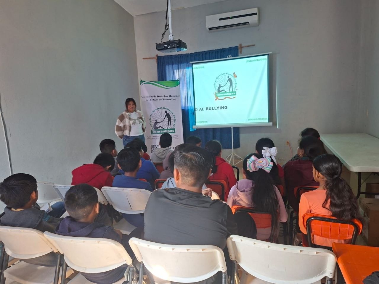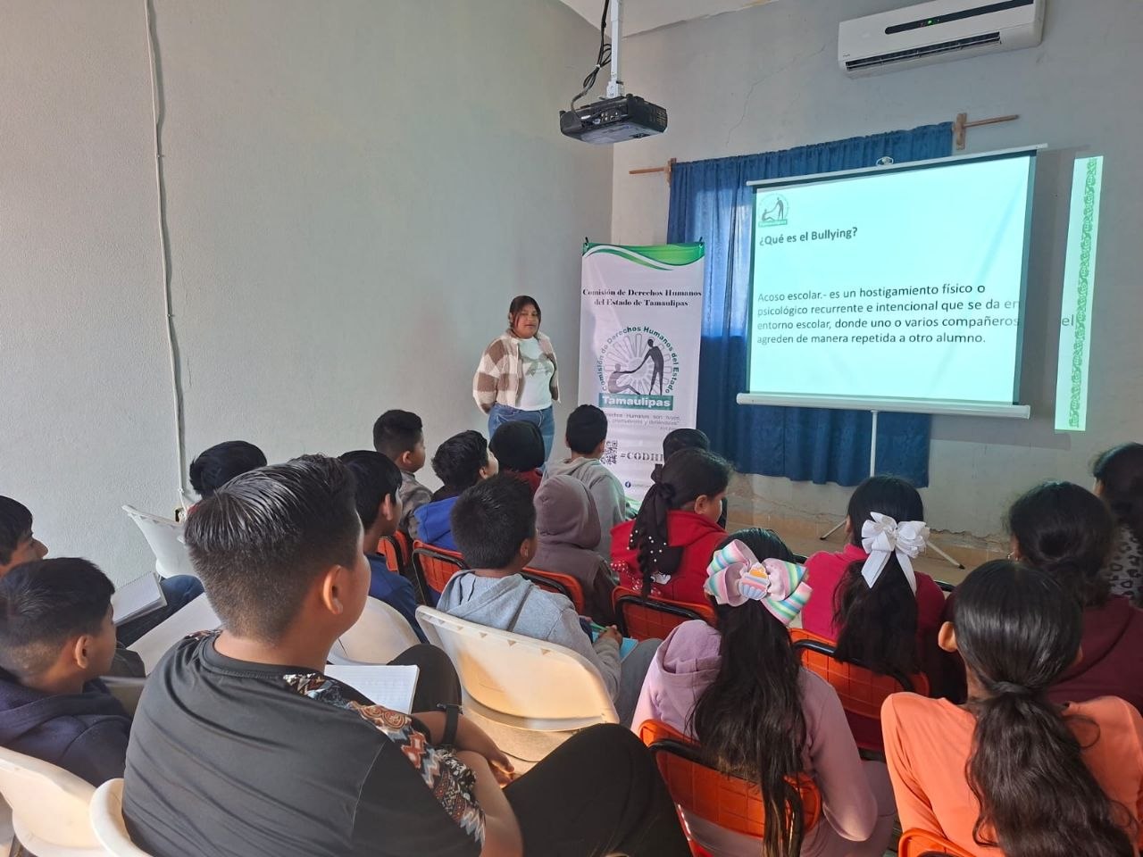 Se llevó a cabo la plática “Consecuencias y tipos de Bullying”, con el objetivo de sensibilizar a las niñas y niños sobre la prevención del acoso escolar y fomentar una cultura de respeto y sana convivencia. La actividad fue impartida por la Licenciada Yulemi Lizbeth Pecina Reyes, adscrita a la Delegación Regional Tula, y dirigida a alumnos de la Escuela Primaria General Lázaro Cárdenas, ubicada en la congregación Charcos, del municipio de Tula, Tamaulipas.