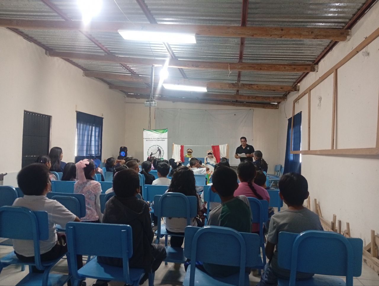 Se realizó visita por parte del personal de la CODHET a la Esc. Primaria Vicente Guerrero de Tula, Tamaulipas, para desarrollar la obra de teatro guiñol “Contemos hasta 10, los derechos de los niños”, una presentación con la que niñas y niños conocieron de forma divertida sobre sus derechos y cómo defenderlos.