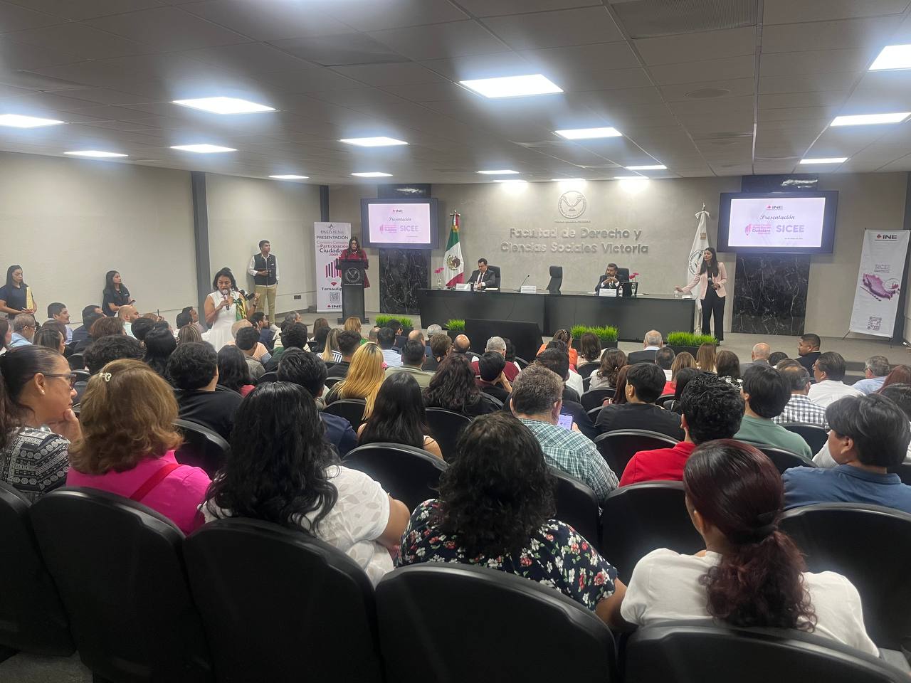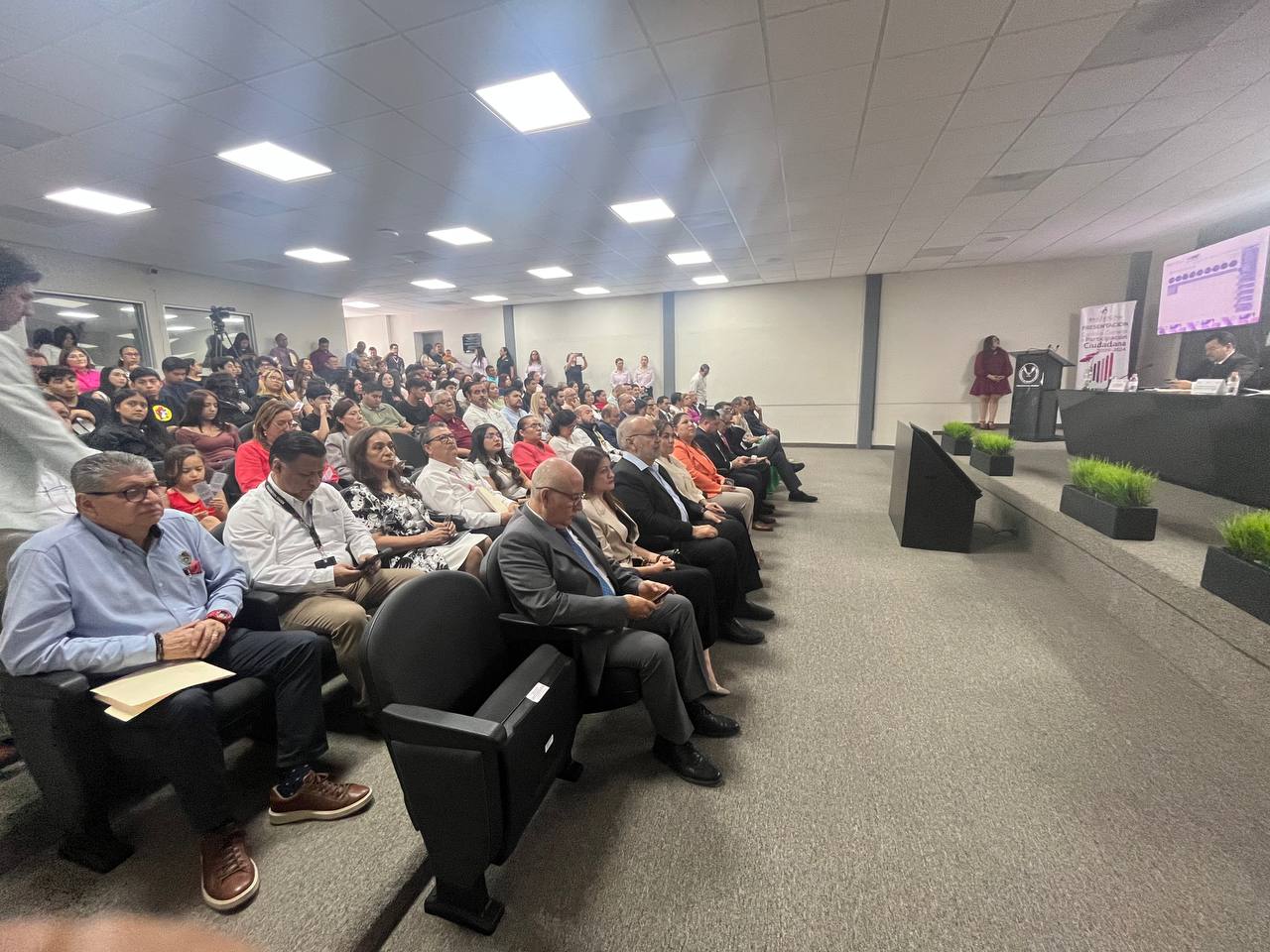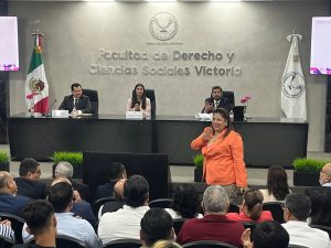 En el Auditorio Dr. Bartolo Pablo Rodríguez Cepeda, de la Facultad de Derecho y Ciencias Sociales Victoria (UAT); en representación de la Dra. María Taide Garza Guerra, Presidenta de la Comisión de Derechos Humanos del Estado de Tamaulipas, asistió la Mtra. Martha Cecilia Manzano Ortiz, Directora de Divulgación, Capacitación y Vinculación de esta Comisión.