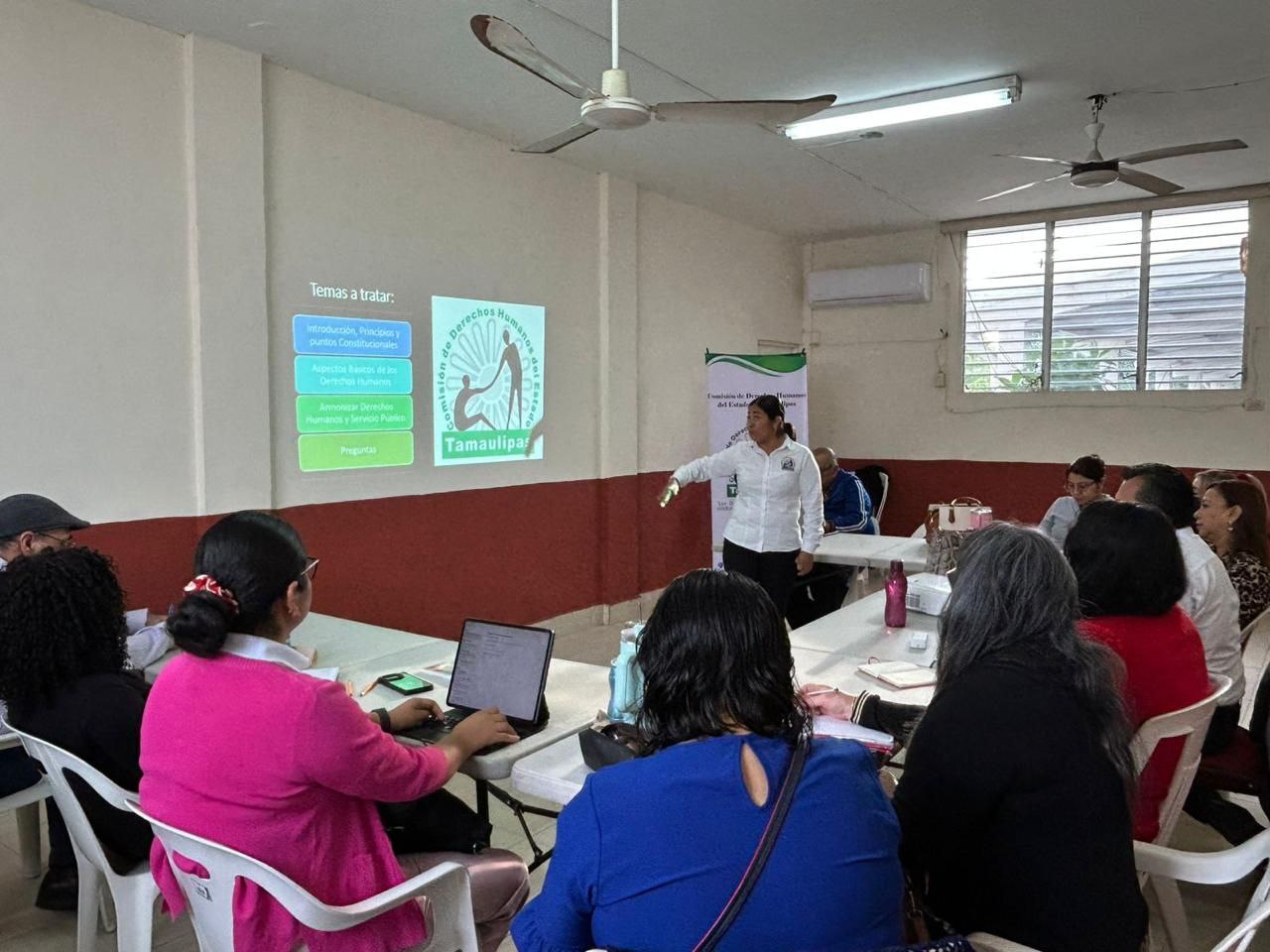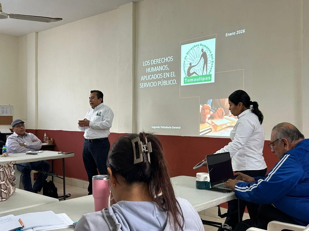 Se impartió plática «Derechos Humanos y el Servicio Público» en la Escuela Primaria «Benito Juárez» en Ciudad Madero, por parte del personal de la Segunda Visitaduría General, dirigida a personal de la Supervisión Escolar, Directivos y docentes del citado plantel escolar.