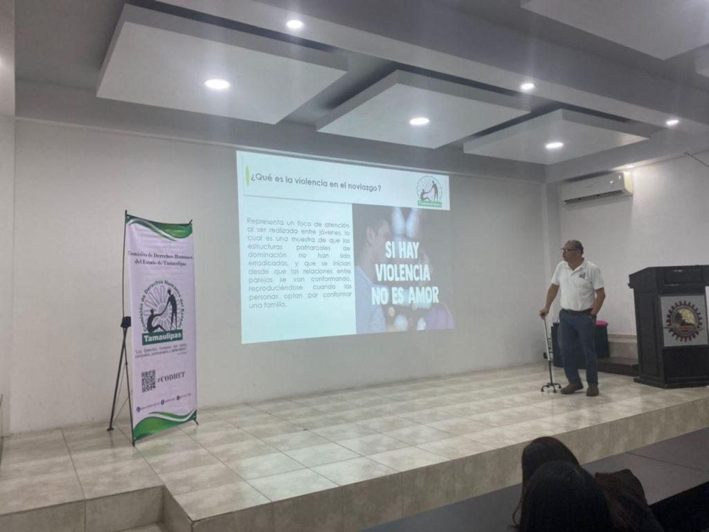 Se llevó a cabo una platica sobre «Violencia en el Noviazgo» así como difusión dirigida a estudiantes del CBTIS No. 7, en el marco de las actividades conmemorativas del Día Naranja que se celebra el día 25 de cada mes, dicha capacitación fue impartida por personal de la Tercera Visitaduría General de la CODHET en Reynosa. La violencia en el noviazgo no es solo un problema personal, también es una violación de los derechos humanos, todos tenemos derecho a una vida libre de violencia, ser respetados y tomar decisiones sin miedo ni presión. Una relación de pareja saludable se construye con respeto, libertad y cuidado mutuo, con información y prevención, podemos prevenir la violencia y fortalecer nuestros derechos.